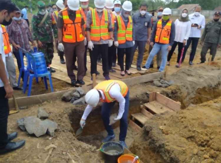 Batanghari – Bupati Batanghari Muhammad Fadhil Arief, SE melakukan peletakan batu pertama dalam pembangunan rumah khusus relokasi beserta prasarana umum (PSU) padat karya tunai.