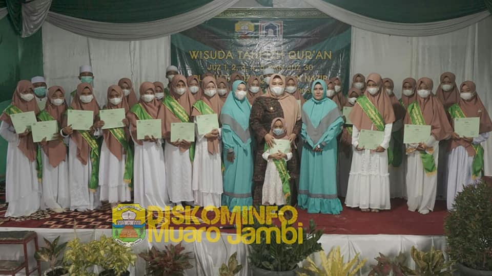 Kegiatan Wisuda Santri Tahfiz Al Qur’an itu berlangsung khidmat dan sukses. Para santri yang diwisuda tampak bersemangat dan ceria, apalagi acara tersebut dihadiri Bupati Perempuan pertama di Provinsi Jambi, yaitu Bupati Hj. Masnah Busyro. (Adv)