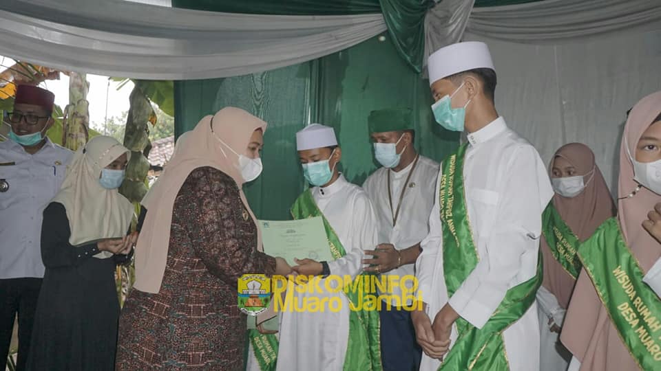 Muaro Jambi – Bupati Muaro Jambi Hj. Masnah Busyro, SE, M.Tr.IP menghadiri acara Wisuda Santri Rumah Tahfiz Annawir, Desa Muara Jambi, Kecamatan Maro Sebo, Kabupaten Muarojambi, Rabu siang, (04/08/2021).