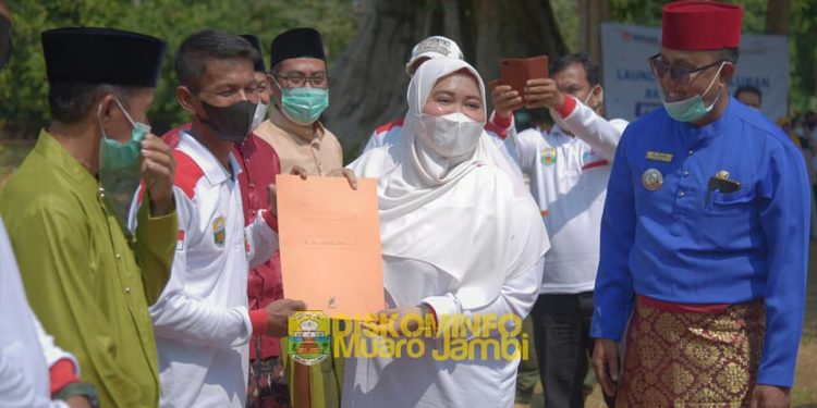 Muaro Jambi – Bupati Muaro Jambi Hj. Masnah Albusyro, SE,. M.Tr.IP menyambut Peserta KKN Kebangsaan dan KKN bersama BKS PTN-Barat, Minggu Pagi (25/07/21) bertempat di Candi Kedaton Komplek Percandian Kabupaten Muaro Jambi
