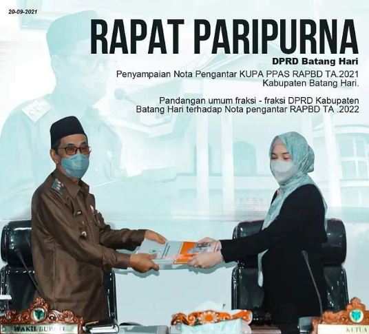 Yakni dalam rangka penyampaian Nota Pengantar KUPA PPAS RAPBD Tahun Anggaran 2021 Kabupaten Batanghari.