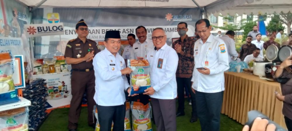 Jambi – Gubernur Jambi Al Haris me-launching gerakan pembelian beras lokal bagi Aparatur Sipil Negara (ASN) di Provinsi Jambi, Rabu (5/10/2022), di lapangan depan kantor Gubernur Jambi.
