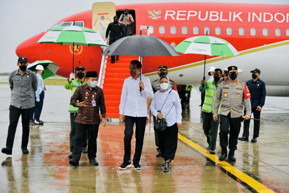 Jambi – Gubernur Jambi Dr.H. Al Haris,S.Sos.,M.H., berserta istri, Hj.Hesnidar Haris,S.E., secara langsung mendampingi Presiden Republik Indonesia, Ir. H. Joko Widodo (Jokowi) berserta Ibu Negara, Hj. Iriana saat melakukan kunjungan kerja (kunker) ke Provinsi Jambi, Kamis (07/04/2022).