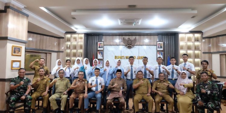 Muaro Jambi – Senin (29/05/23) Penjabat Bupati Muaro Jambi Bachyuni Deliansyah, SH., MH menjamu pasukan Pengibar Bendera Pusaka (Paskibraka) perwakilan Kabupaten Muaro Jambi yang akan bertugas pada 17 Agustus tahun ini.
