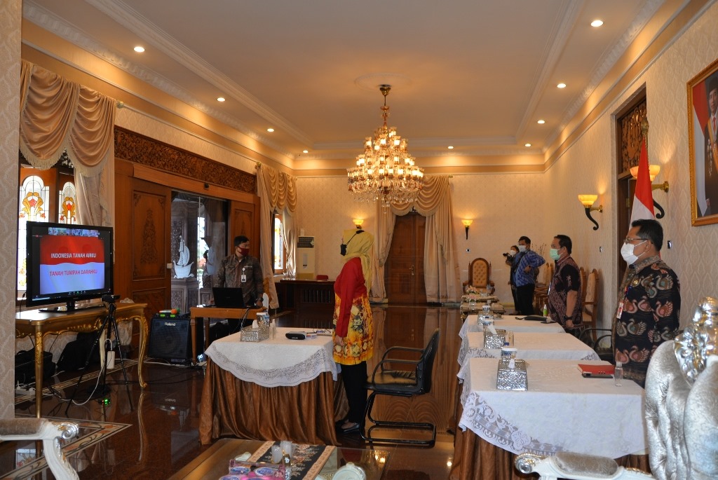 Jambi – Penjabat (Pj) Gubernur Jambi Dr. Hari Nur Cahya Murni mengikuti Rapat Koordinasi Teknis Perencanaan Pembangunan (Rakortekrenbang) secara daring dari Auditorium Rumah Dinas Gubernur Jambi, Kamis (25/2).