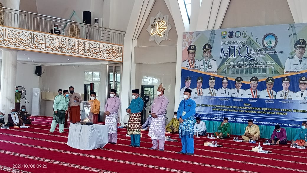 Sementara ketua panitia pelaksana MTQ ke 50 tingkat Provinsi Jambi membacakan hasil keputusan panitia nomor 06 tahun 2021 tentang penilaian pemenang MTQ ke 50 tingkat Provinsi Jambi di Kabupaten Tanjab Barat sebagai berikut :