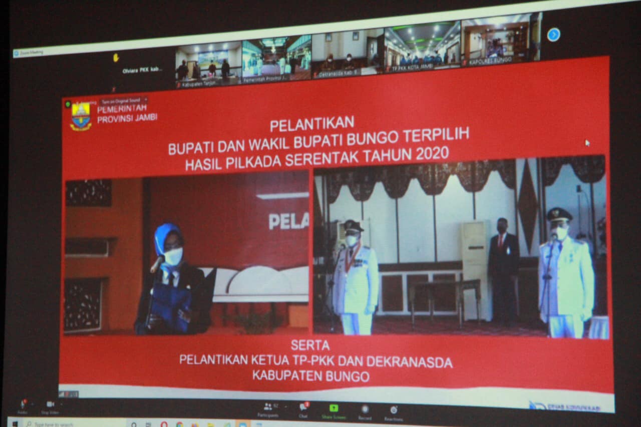 JR, Tanjab Barat – Sekretaris Daerah Kabupaten Tanjab Barat mengikuti Acara Pelantikan Bupati Dan Wakil Bupati Kabupaten Bungo secara virtual di Ruang Rapat Bupati Periode 2021-2024, senin (14/06).