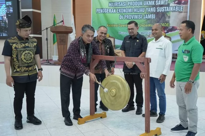 Muaro Jambi – Wakil Bupati Kabupaten Muaro Jambi Junaidi H. Mahir membuka secara resmi kegiatan workshop hilirisasi produk UKMK produk sawit penggerak hijau yang sustainable di provinsi Jambi, Kamis (6/03/2025).