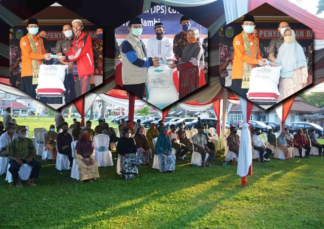 Jambiraya.com, Jambi – Gubernur Jambi Dr.DrsH.Fachrori Umar,M.Hum menyalurkan bantuan Jaring Pengaman Sosial (JPS) Covid-19 tahap III untuk masyarakat Kabupaten Bungo dan Tebo, Jumat (28/8) siang. Di Kabupaten Bungo bantuan diberikan untuk 2.036 rumah tangga peneriman manfaat, senilai Rp1,22 miliar, untuk Kabupaten Tebo 1.711 penerima manfaat senilai Rp1.026 miliar, dengan nilai Rp600.000 per rumah tangga, terdiri dari bahan pangan pokok senilai Rp350.000 dan uang tunai Rp250.000. Penyampaian bantuan JPS Covid dimaksudkan untuk meringankan beban masyarakat kurang mampu secara ekonomidi tengah mewabahnya pandemi Covid-19.