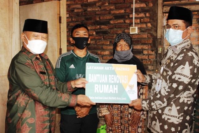 JR,(Kota Jambi) – Wakil Walikota Jambi Dr Maulana bersama pimpinan BAZNAS Kota Jambi, Camat Kota baru, Lurah paal lima serta Ketua RT menyerahkan bantuan buat renovasi rumah ibu Marsini umur 63 tahun. Penyerahan dilakukan langsung di RT 21 Kelurahan Paal lima Kecamatan Kota baru Kamis (1/3/2021).
